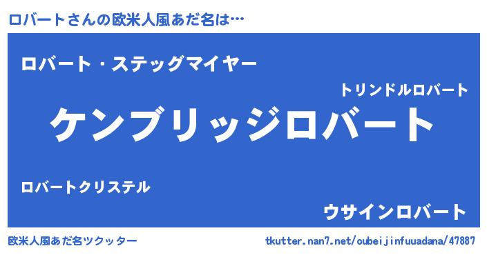 | 女子向けラノベタイトル風あだ名 | 『闇のロバート』『ロバートは平凡を望む』 |