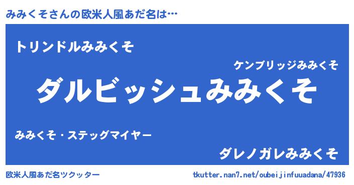 | 意味不明あだ名 | 『永久保存みみくそ』『自称みみくそ』 |
