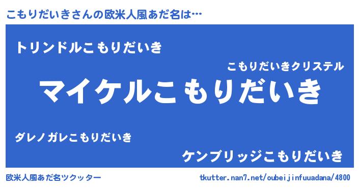 女子向けラノベタイトル風あだ名 | 『誰かこのこもりだいきを説明してください! ~契約から始まるウェディング~』 |