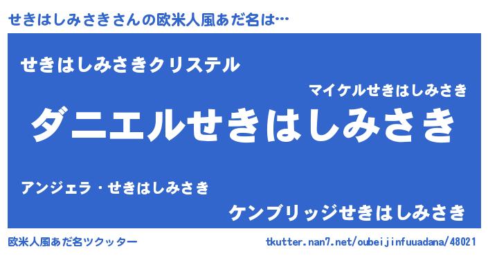 | 男性向けラノベタイトル風あだ名 | 『おまえをオタクにしてやるから、俺をせきはしみさきにしてくれ! 』 |
