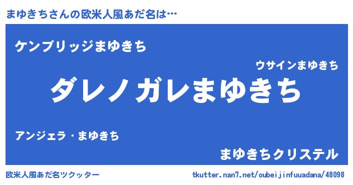 | 男性向けラノベタイトル風あだ名 | 『魔弾の王とまゆきち』 |