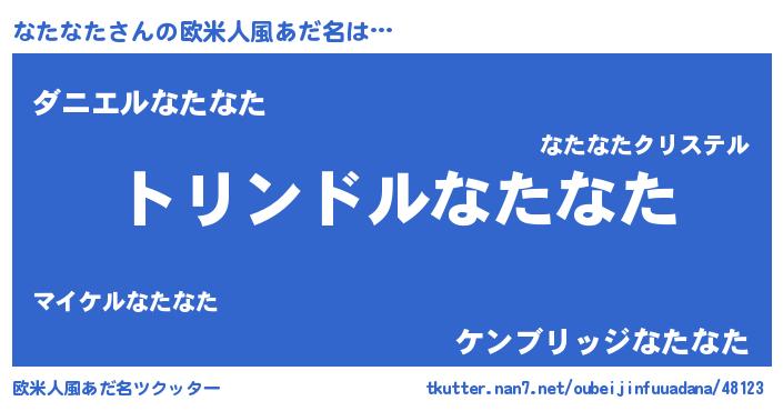 | 男性向けラノベタイトル風あだ名 | 『なたなた~年齢イコール彼女いない歴の魔法使い~』 |