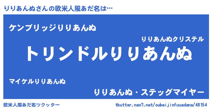 | 男性向けラノベタイトル風あだ名 | 『転生したらりりあんぬだった件』 |