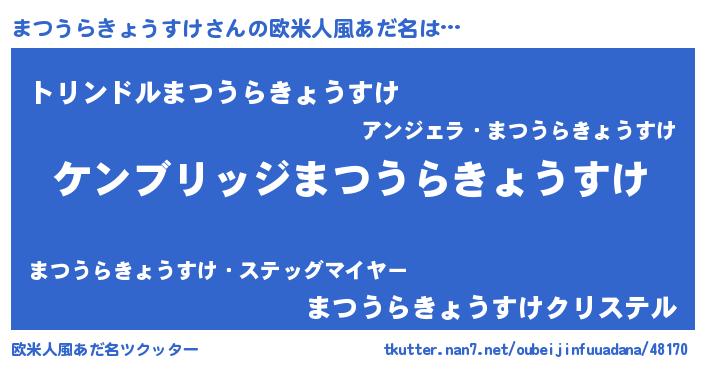 | 女子向けラノベタイトル風あだ名 | 『まつうらきょうすけなんてお断りですっ。』 |