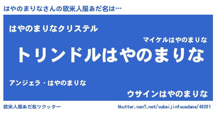 | 男性向けラノベタイトル風あだ名 | 『ハヤノマリナスレイヤー』 |