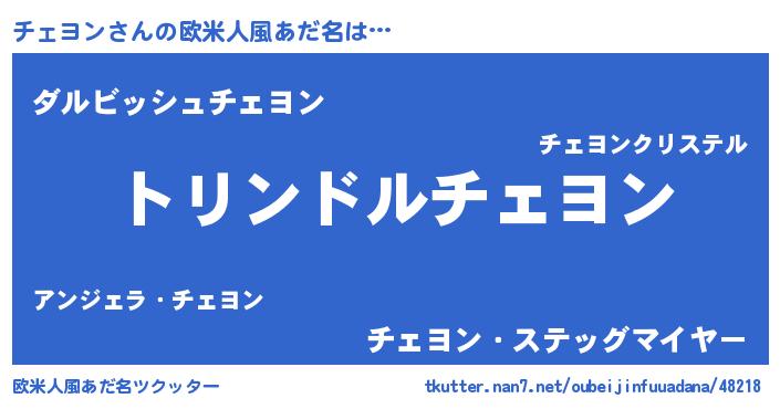 | 男性向けラノベタイトル風あだ名 | 『チェヨン~年齢イコール彼女いない歴の魔法使い~』 |