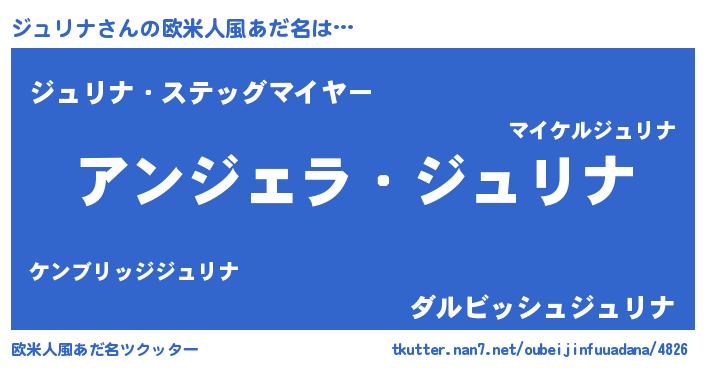 | 胡散臭い通販商品みたいなあだ名 | 『来世でも幸せになれる健康食品…その名も「ジュリナ」』 |
