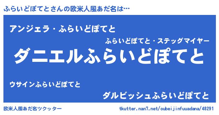 | 男性向けラノベタイトル風あだ名 | 『おまえをオタクにしてやるから、俺をふらいどぽてとにしてくれ! 』 |