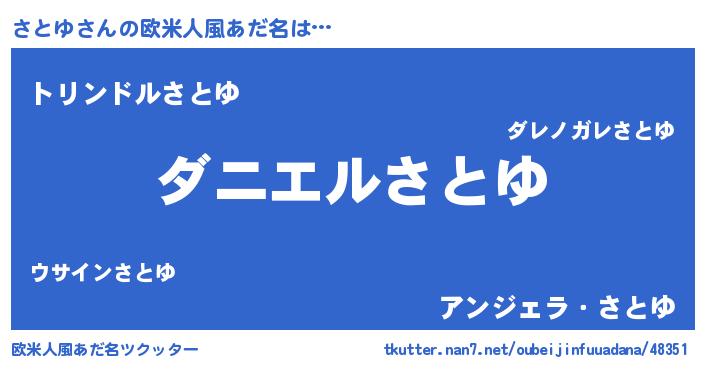 | 男性向けラノベタイトル風あだ名 | 『おまえをオタクにしてやるから、俺をさとゆにしてくれ! 』 |