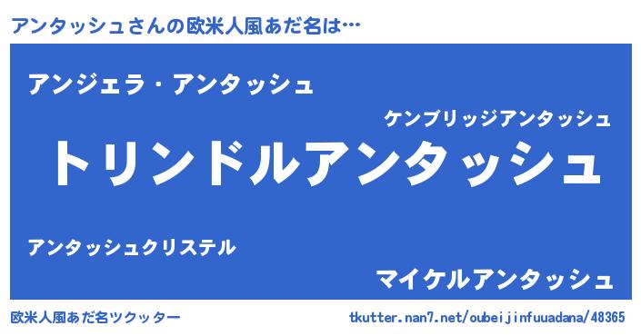 | 男性向けラノベタイトル風あだ名 | 『転生したらアンタッシュだった件』 |