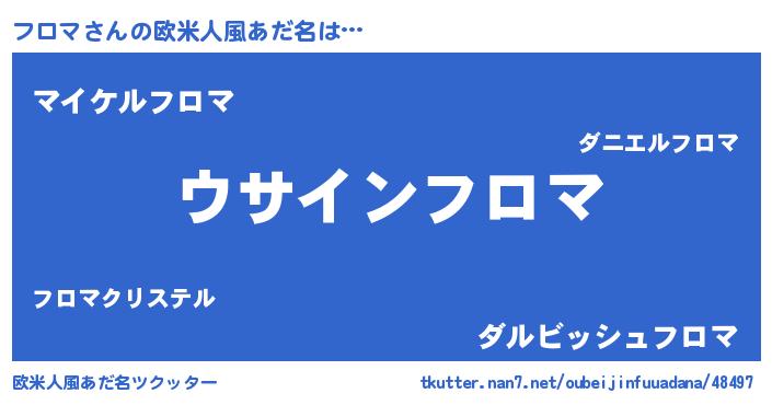 | 男性向けラノベタイトル風あだ名 | 『フロマの嫁は女の子じゃないと思った?』 |