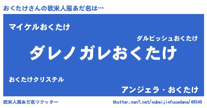| 女子向けラノベタイトル風あだ名 | 『おくたけが死なない童話 林檎のおくたけの診療簿』 |