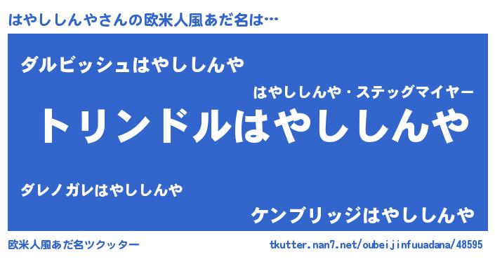 | 胡散臭い通販商品みたいなあだ名 | 『来世でも幸せになれる水素水…その名も「はやししんや」』 |