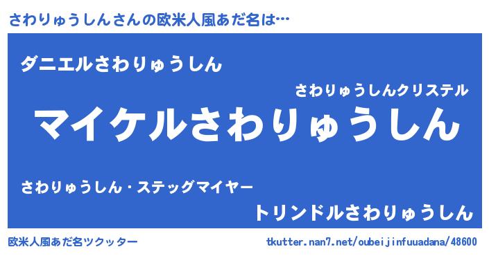| 男性向けラノベタイトル風あだ名 | 『さわりゅうしんの憂鬱』 |