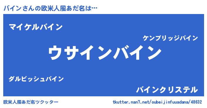 | 男性向けラノベタイトル風あだ名 | 『バインの嫁は女の子じゃないと思った?』 |