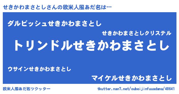| 男性向けラノベタイトル風あだ名 | 『転生したらせきかわまさとしだった件』 |