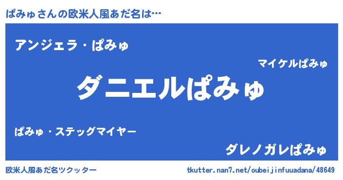 | 男性向けラノベタイトル風あだ名 | 『おまえをオタクにしてやるから、俺をぱみゅにしてくれ! 』 |