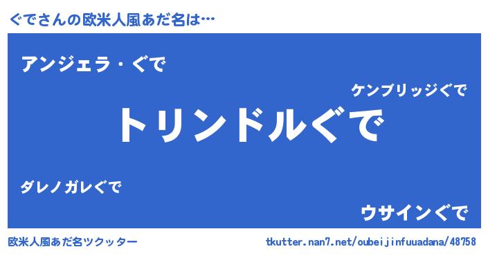 | 男性向けラノベタイトル風あだ名 | 『転生したらぐでだった件』 |