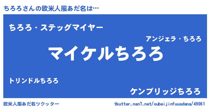 | 意味不明あだ名 | 『ペロリンちろろ』『自称ちろろ』 |