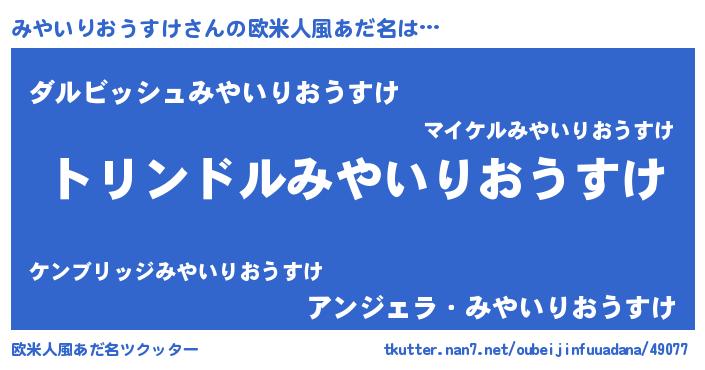 | ヘコむあだ名 | 『みやいりおうすけ(笑)』『みやっふぃ~』 |