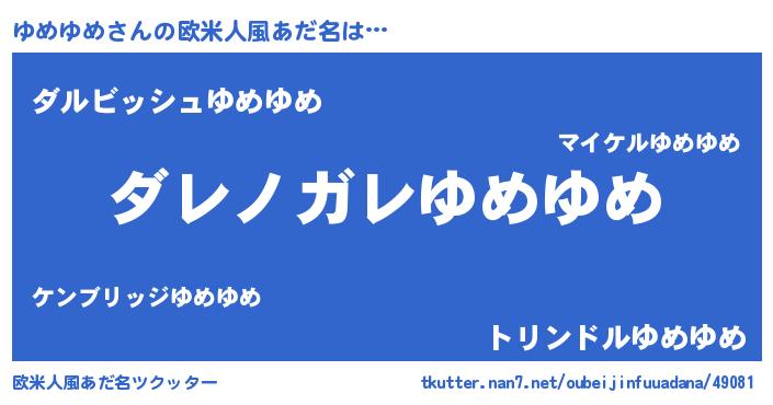 | ヘコむあだ名 | 『ゆめゆめ(笑)』『ゆめっふぃ~』 |
