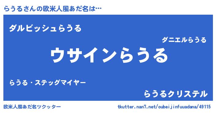 | 男性向けラノベタイトル風あだ名 | 『らうるの嫁は女の子じゃないと思った?』 |
