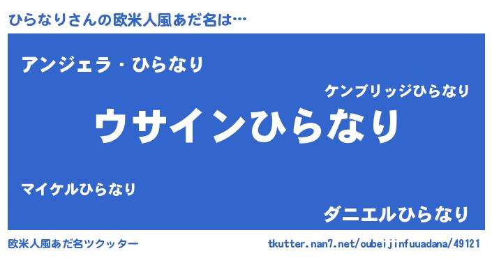 | 女子向けラノベタイトル風あだ名 | 『ひらなりの卵を拾いまして』 |