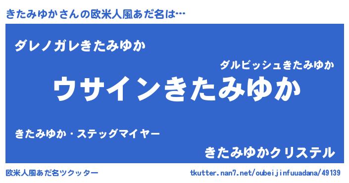 | 女子向けラノベタイトル風あだ名 | 『きたみゆかの卵を拾いまして』 |