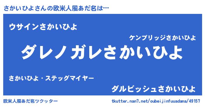 | 意味不明あだ名 | 『住所不定無職さかいひよ(56歳)』 |