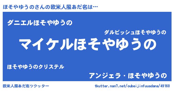 | 男性向けラノベタイトル風あだ名 | 『ほそやゆうのの憂鬱』 |
