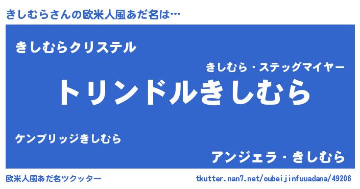 | 男性向けラノベタイトル風あだ名 | 『きしむら~年齢イコール彼女いない歴の魔法使い~』 |