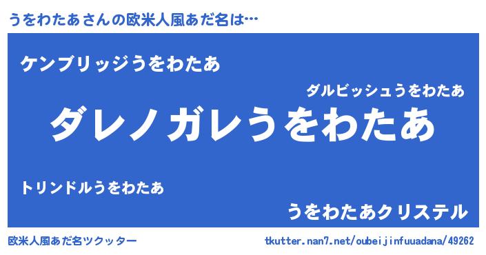 | 女子向けラノベタイトル風あだ名 | 『乙女ゲームの破滅フラグしかない悪役うをわたあに転生してしまった…』 |