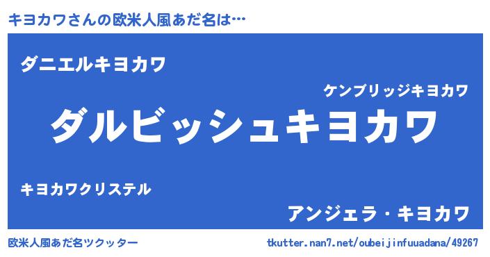 | 男性向けラノベタイトル風あだ名 | 『キヨカワという概念が存在しない退屈な世界 』 |