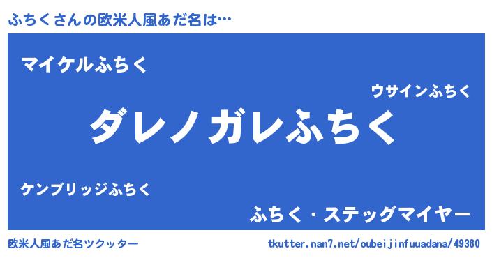 | 男性向けラノベタイトル風あだ名 | 『この素晴らしい世界にふちくを!』 |