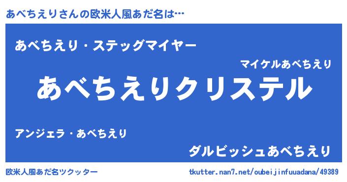 | 女子向けラノベタイトル風あだ名 | 『あべちえりの婚約者』 |