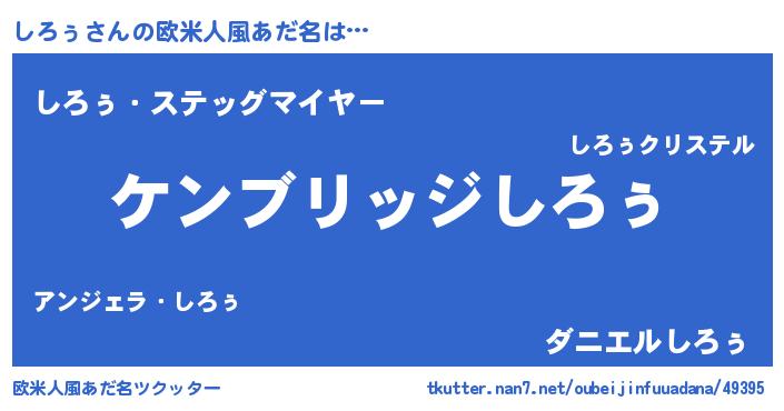 | 男性向けラノベタイトル風あだ名 | 『Re:しろぅから始める異世界生活』 |