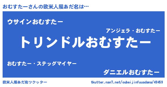 | 男性向けラノベタイトル風あだ名 | 『転生したらおむすたーだった件』 |