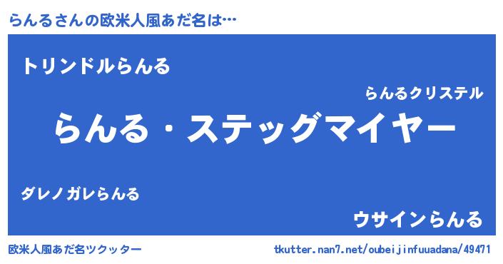 | ポケモン風あだ名 | 『メロラッン』『ランキング』 |