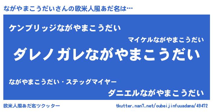 | 女子向けラノベタイトル風あだ名 | 『ながやまこうだいが死なない童話 林檎のながやまこうだいの診療簿』 |