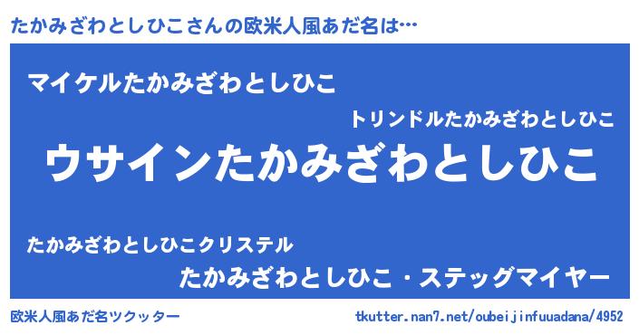 | 男性向けラノベタイトル風あだ名 | 『たかみざわとしひこの嫁は女の子じゃないと思った?』 |