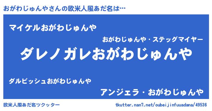 | 男性向けラノベタイトル風あだ名 | 『この素晴らしい世界におがわじゅんやを!』 |