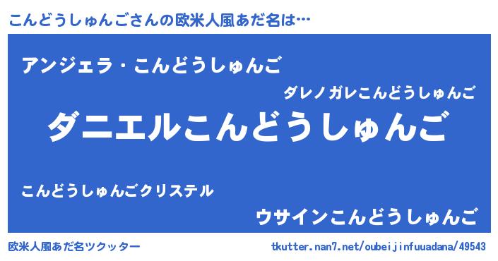| 男性向けラノベタイトル風あだ名 | 『ノーゲーム・ノーコンドウシュンゴ』 |