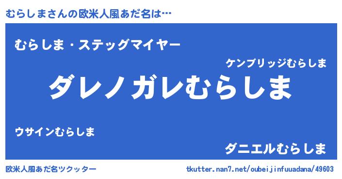 | ヒーロー風カッコイイあだ名 | 『仮面ムラダー』『正義の使者むらしま』 |