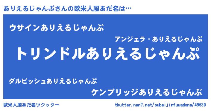 | 女子向けラノベタイトル風あだ名 | 『ありえるじゃんぷの玉の輿計画!』 |