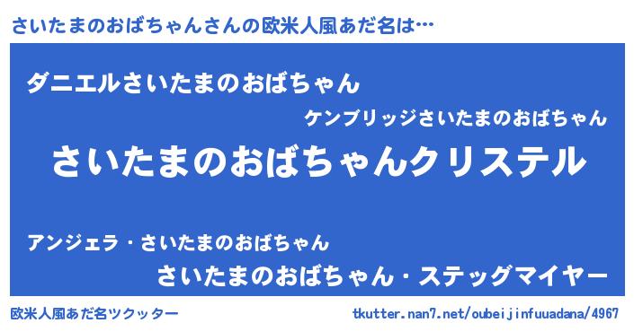 | 意味不明あだ名 | 『さいたまのおばちゃんフォーエバー』 |