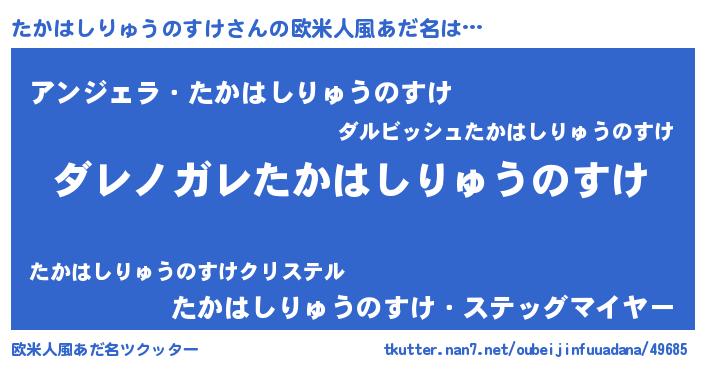 | 意味不明あだ名 | 『住所不定無職たかはしりゅうのすけ(68歳)』 |