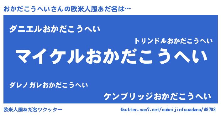 女子向けラノベタイトル風あだ名 | 『(仮)おかだこうへいのやんごとなき事情』 |