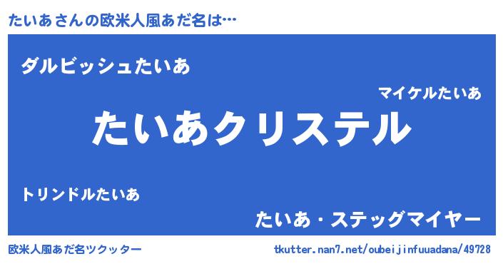 | ヘコむあだ名 | 『豆乳』『たいあ(笑)』『たいっ子』 |