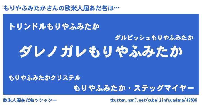 | 女子向けラノベタイトル風あだ名 | 『乙女ゲームの破滅フラグしかない悪役もりやふみたかに転生してしまった…』 |
