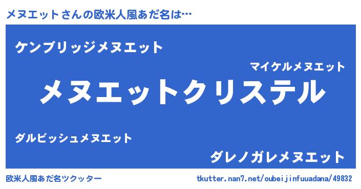 | ポケモン風あだ名 | 『メヌエダネ』『メヌセウス』 |